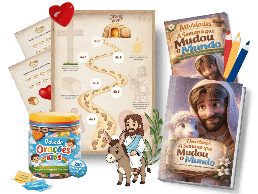 👉 Você gostaria que seu filho lembrasse da Páscoa como um tempo especial com Deus, e não apenas como mais uma data no calendário?